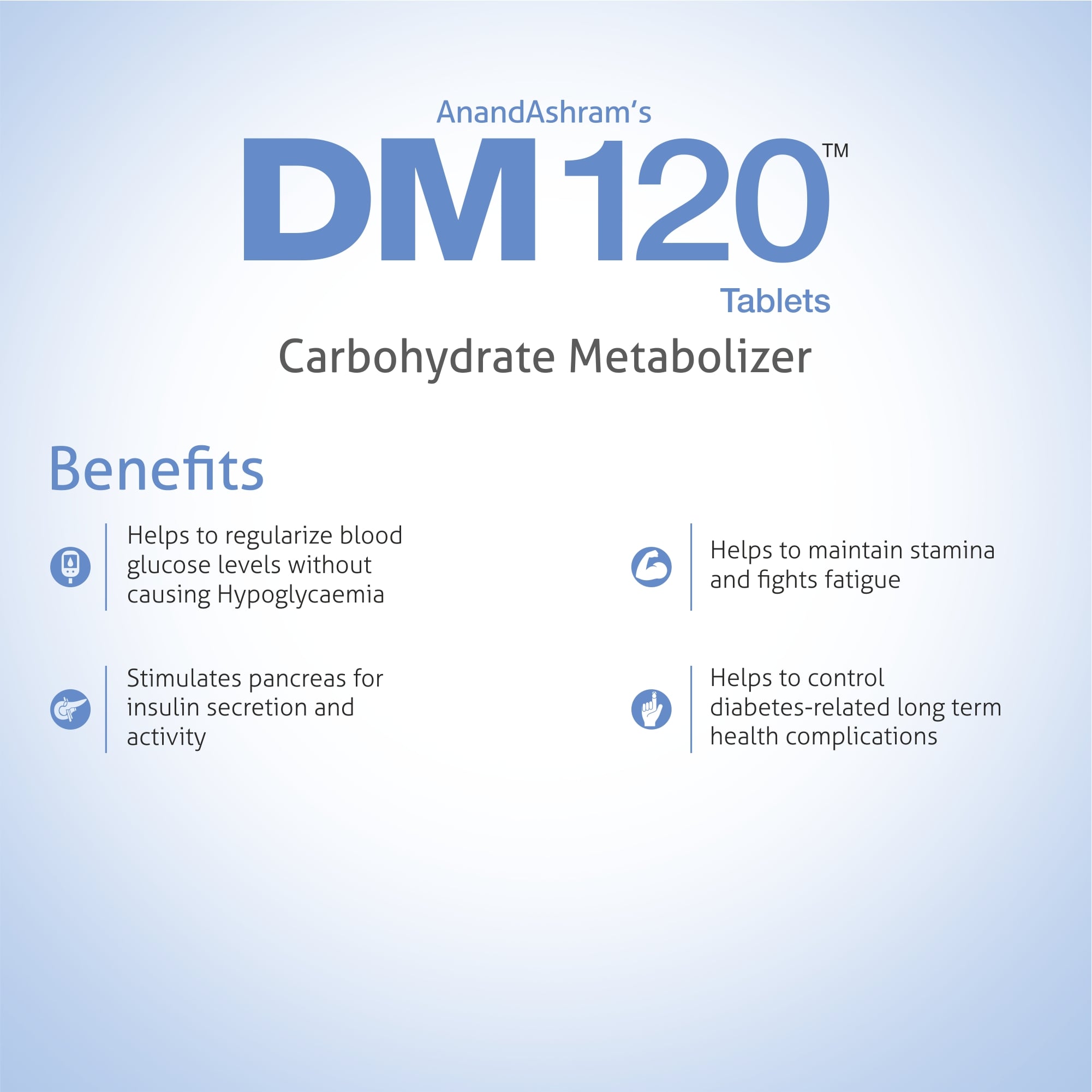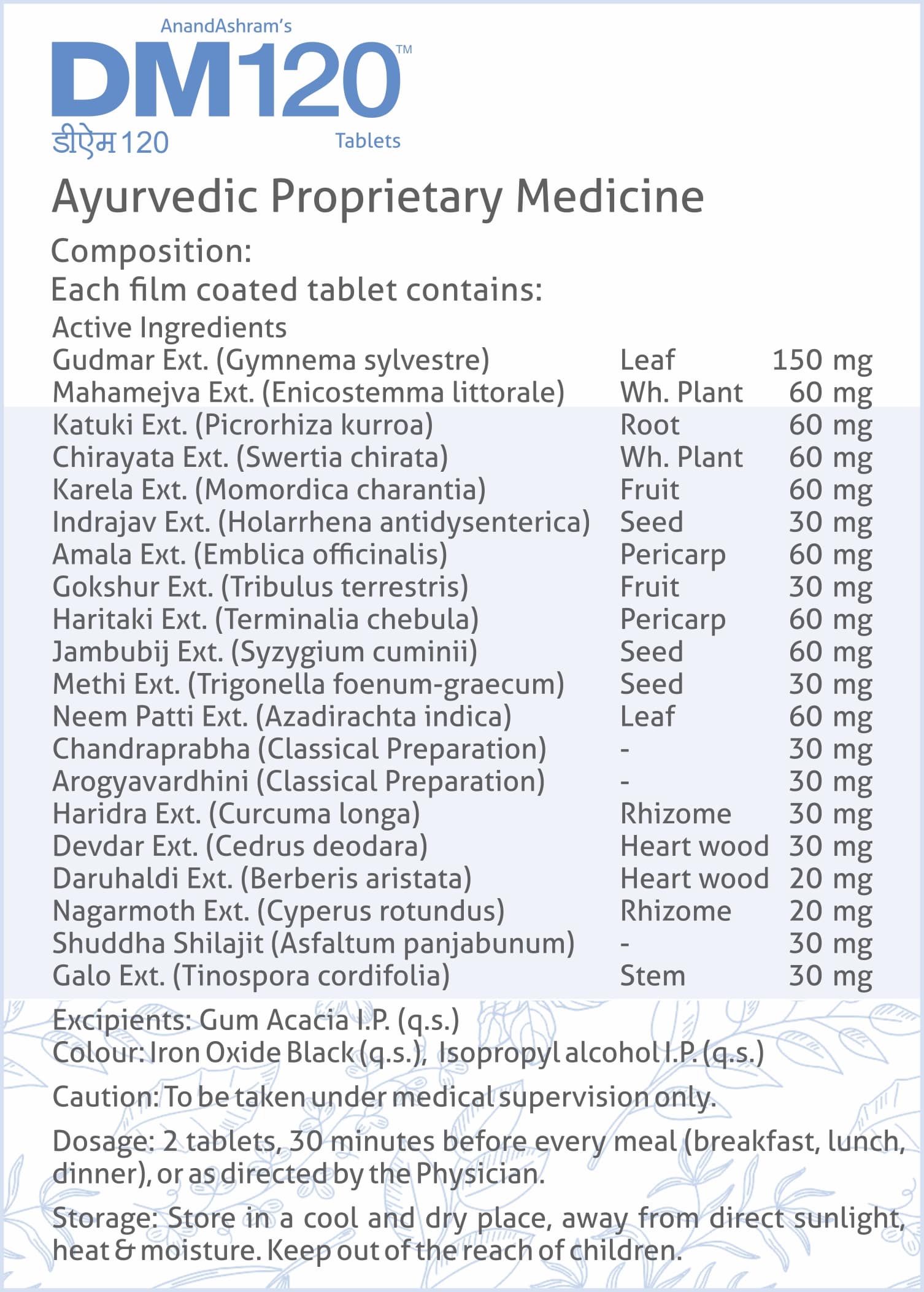 - Anand Ashram’s DM 120™ tablets is not a substitute for your prescribed medication.