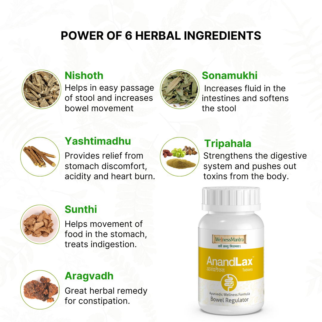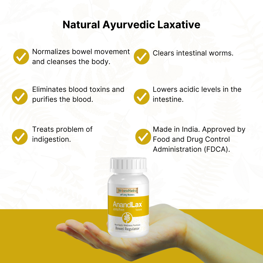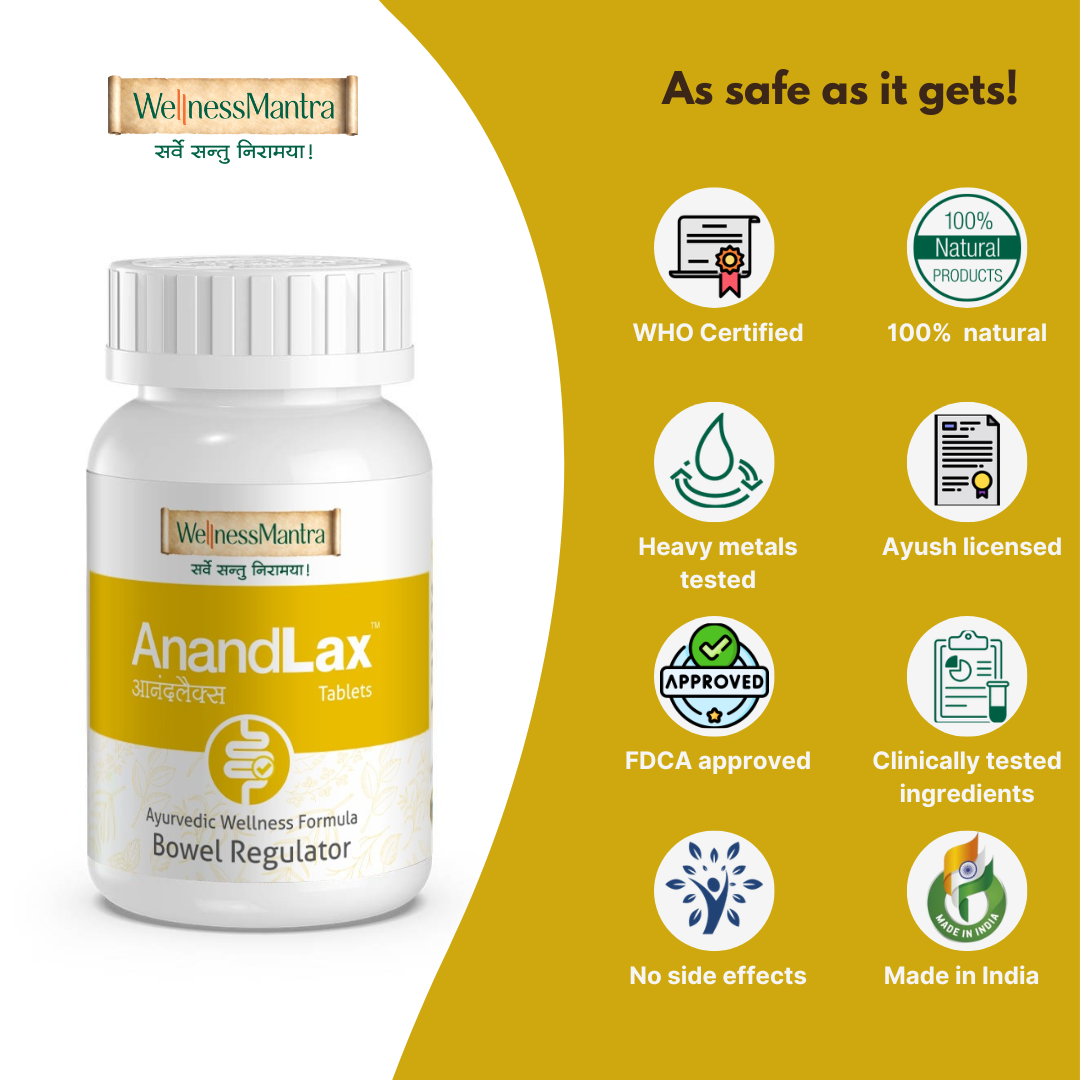 I always face problem of constipation then next day after eating outside food, since AnandLax tablets are completely ayurvedic, I take these tablets without worry before going to bed and am assured of having a clear stomach the next morning.